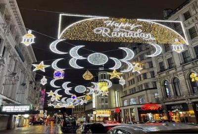 تزينت شوارع وسط لندن بـ “زينة رمضان” لأول مرة على الإطلاق ترحيبًا بشهر رمضان المبارك، حيث امتلأت الشوارع بالفوانيس والنجوم والأقمار.
