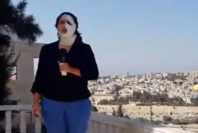 أصيبت مراسلة قناة الميادين “هناء محاميد”، بحروق في الوجه بعد إلقاء قنبلة صوت مباشرة علي طاقم القناة أثناء تغطية إقتحام قوات الإحتلال الإسرائيلي لمنزل الشهيد “فادي علون” في بلدة العيساوية بمدينة القدس المحتلة.