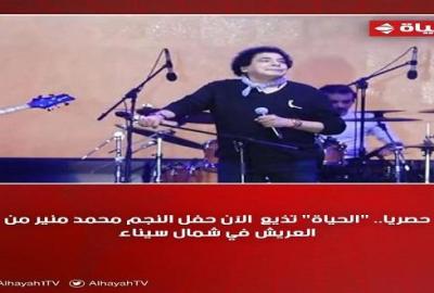 تذيع شبكة “تليفزيون الحياة، في بث مباشر حصري، حفل النجم محمد منير، من مدينة العريش في محافظة شمال سيناء، وذلك بعد نجاح القوات المسلحة والدولة المصرية في دحر الإرهاب، وعودة الحياة لطبيعتها في أرض الفيروز.