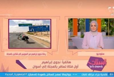 تابعت “إبراهيم” أول فتاة مصرية تسافر من السويس إلى شلاتين بالعجلة، خلال مداخلة لبرنامج “الستات مايعرفوش يكدبوا” على قناة “CBC”، أن أكثر مكانين انبهرت بهما خلال الرحلة هما “مرسى علم” و”دهب”، مؤكدة أنها تغلبت على صعوبات الطريق من خلال التجهيز للرحلة الطويلة من السويس إلى شلاتين، قائلة:” كنت بعمل حسابى طول الطريق فى أكلات ومياه كتيرة، وسكريات عشان أقدر أكمل الطريق الطويل”.