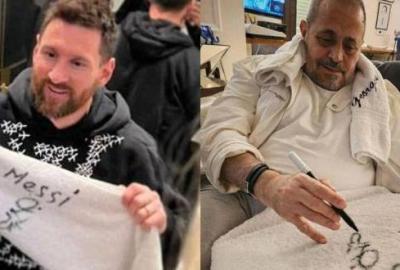 كما تحدث عن قصة هديته الشهيرة للاعب كرة القدم ليونيل ميسي، موضحا أن صديق مشترك بينه وبين ميسي طلب منه هدية موقعة منه لميسي فمضى له على منشفة وأرسلها له، وبالفعل قبلها وتصور بها.