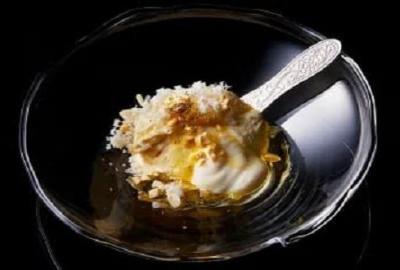 يعلو الآيس كريم، الذي تنتجه شركة سيلاتو اليابانية، ورقة ذهبية صالحة للأكل، ونوعين من أغلى وأجود أنواع الجبن الطبيعي، بالإضافة إلى العديد من المكونات والنكهات النادرة الأخرى من مصدرها الأساسي من دول مختلفة.