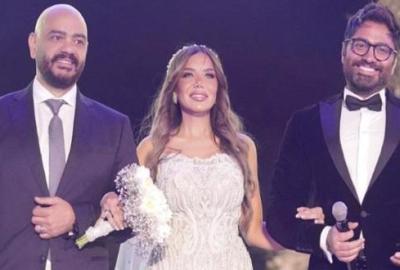 قدم الفنان تامر حسني العروس لزوجها، وقدم بالحفل العديد من أغانيه المختلفة.