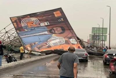 أسفر سقوط لوحة إعلانية ضخمة أعلى كوبري أكتوبر عن إصابة 3 أشخاص، وتحطم 3 سيارات ملاكي ودراجة بخارية، تصادف مرورها أعلى الكوبري.