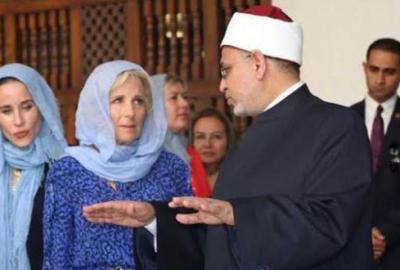 أشار “داوود” خلال مداخلة هاتفية ببرنامج “حديث القاهرة”، مع الإعلامي خيري رمضان، مساء السبت، على قناة القاهرة والناس، إلى أنهم لم يطلبوا من جيل بايدن ارتداء غطاء الرأس وجاءت به هي وابنتها واختها. قائلا: “هي جاءت بغطاء الرأس هي وأختها وابنتها والوفد المرافق لها، ولم يجبرها أحد على ارتداء غطاء الرأس”.