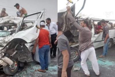 لقى 15 شخصا مصرعهم وأصيب اثنان آخران، مساء اليوم الثلاثاء، في حادث تصادم مروع بين تريلا مع سيارة ميكروباص بطريق الكريمات – حلوان الصحراوي الشرقي.