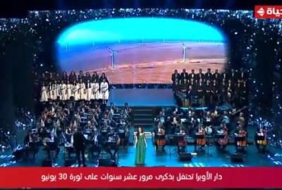 تحتفل شبكة تليفزيون الحياة، بذكرى ثورة 30 يونيو، بحفل ضخم من دار الأوبرا المصرية، يضم نخبة مختارة من المؤلفات الوطنية والرومانسية الشهيرة يقدمها نجوم الموسيقى العربية بقيادة المايسترو الدكتور مصطفى حلمي بمشاركة طلاب فصول الكورال والباليه بمركز تنمية المواهب تحت إشراف الدكتور سامح صابر ومن إخراج مهدي السيد ويصاحبها تابلوهات حركية تصميم سالي أحمد وذلك يوم 3 يوليو على المسرح الكبير.