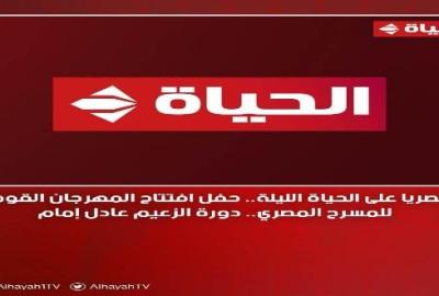 تذيع شبكة تليفزيون الحياة، الليلة، حصريًا، حفل افتتاح المهرجان القومي للمسرح المصري، في دورته السادسة عشر، والتي تحمل اسم الزعيم الفنان عادل إمام.