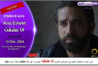 أعلنت شبكة osn أنها ستعرض حصريًا مسلسل “أنا عشقت”، ابتداء من 13 ديسمبر 2014، وذلك من السبت للأربعاء في العاشرة مساءً.