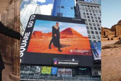 احتفل مصمم الأزياء المصري مؤمن عوض بعرض أخر أعماله على شاشات ميدان تايم سكوير بنيويورك، ليصبح أول مصمم أزياء مصري تعرض أعماله هناك.