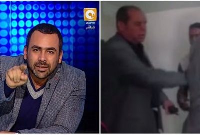 عرض الإعلامي، يوسف الحسيني، مقطع فيديو لرئيس حي المقطم “عبد السميع وهدان”، يدفع سيدة حاولت مقابلة محافظ القاهرة، قائلاً لها : مش هيسمعك.