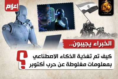 أضافت أن الأمر نفسه حدث في مسألة السؤال عن حرب أكتوبر، وأن إجابته هي نتاج لما تم تمرينه عليه، فإذا كانت مدخلاته تروي أن النصر كان حليف العرب، وقتئذ، لكانت إجابته كذلك، وإذ ما كان تم تغذيته بوجهة نظر أخرى، فسوف يعتمد عليها في إجابته.