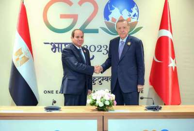 التقى الرئيس عبد الفتاح السيسي، اليوم، بنيودلهي مع الرئيس التركي رجب طيب أردوغان.