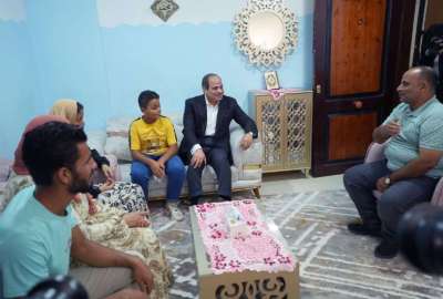 ولفت إلى أن أولاده سعداء جدا بزيارة الرئيس، وحتى الآن لا يصدقوا أن الرئيس كان في منزلهم، مستطردا: "الرئيس جبر بخاطر كل واحد نادى عليه خلال الزيارة".