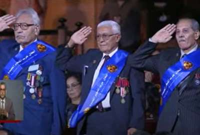 من جانبه أوضح الإعلامي أسامة كمال، أن العميد أحمد شوقي قائد عملية "رأس العش"، تغيب عن الحضور بسبب ظروفه الصحية.