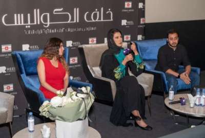 وأوضحت المؤلفة خلال المؤتمر الصحفي: "كتابتي وإنتاجي لفيلم خلف الكواليس، انطلقت من تلك الرؤية، إذ حاولت أن أبحث في محتواه عن مسار مختلف وأشكل وأبني في معماره مزيجاً من الفن بمضامينه المتنوعة، خاصة أني سكبت هذه الرؤى بطريقة متناغمة ضمن حبكة وتفاصيل خلف الكواليس الذي يمثل قصة رومانسية واجتماعية، مليئة بالأحداث والمفاجآت تحتوي أيضاً على زهور الأدب والشعر.