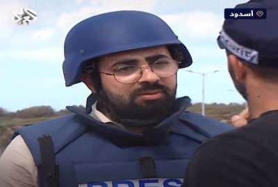 ترجم مراسل القناة ما قاله الشرطي، موضحا أن الأخير حاول فرض رقابة عما يتحدث به أمام المشاهدين، موضحا أنه كان يحمل مسدسا.