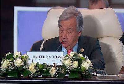 وأضاف جوتيريش، خلال كلمته في قمة القاهرة للسلام 2023، التي تنقلها قناة القاهرة الإخبارية على الهواء مباشرة، أنّه يجب إنهاء الصراع المستمر على مدار 65 عاما، لافتا إلى أنّ الأمور المروعة بحق الفلسطينيين، تتطلب تطبيق القانون الدولي لحمايتهم، وفق اتفاقية جنيف.