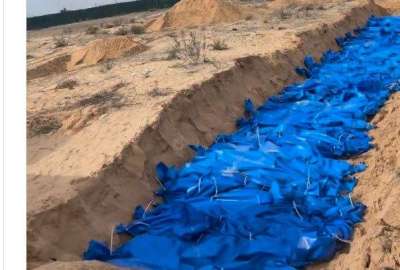 ظهرت مشاهد لدفن جماعي للعديد من الشهداء الفلسطينيين، التي قامت قوات الاحتلال الإسرائيلي بخطف جثامينهم من مجمع الشفاء الطبي، وقامت اليوم بعمل قبر جماعي لهم.