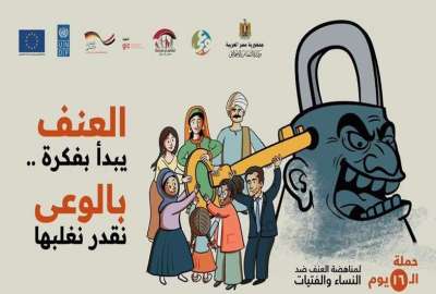 وكذلك الفتيات اللاتي يتم لهن إجراء جريمة ختان الإناث وما تعانيه من انتهاك حقوقها في الصحة النفسية والجسدية، والفتيات اللاتي تتزوج وهن في مرحلة الطفولة وتحرمن من حقوقهن في التعليم والصحة والمستوى المعيشي المناسب، حيث تعرض الحملة للأفكار والمعتقدات السلبية التي تقف وراء استمرار هذه الأشكال من العنف ضد المرأة، وتقدم المعرفة الصحيحة العلمية والاجتماعية والدينية للرد على مثل هذه الأفكار والمعتقدات، وكذلك الخدمات التي تقدمها وزارة التضامن الاجتماعي للتعامل مع أشكال العنف المختلفة، وحماية النساء والفتيات وكيفية الوصول لها.