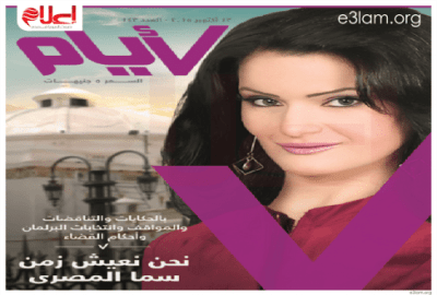 صدر العدد الجديد من مجلة 7 أيام حاملا صورة الفنانة المستبعدة من السباق الإنتخابي “سما المصري” تحت عنوان “نحن نعيش زمن سما المصري” والتحليل لرئيس التحرير د.ياسر أيوب الذي افتتح العدد نفسه بمقال عنوان ” نوبل وتونس وتركيا ومصر وأشياء أخرى مزعجة”