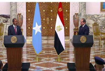 وأضاف الرئيس السيسى، أن الصومال دولة عربية ولها حقوق طبقًا لميثاق الجامعة العربية فى الدفاع المشترك لأى تهديد لها، مؤكدًا بكل وضوح أن مصر لن تسمح لأحد بتهديد الصومال أو يمس أمنها، مضيفًا: "محدش يجرب مصر ويحاول يهدد أشقاءها خاصة لو أشقاءها طلبوا منها التدخل".