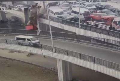 وتبين اصطدام سيارة نقل مقطورة بعدد من السيارات؛ ما تسبب في إطاحة 3 سيارات "ميكروباص، وملاكي، ونقل محملة بالمواشي".