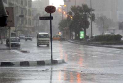 مع وجود أمطار متوسطة إلى غزيرة ورعدية أحيانا على مناطق من (مطروح - الإسكندرية - البحيرة - كفر الشيخ - الدقهلية - دمياط - بورسعيد) قد تكون مصحوبة بحبات البرد على فترات متقطعة.