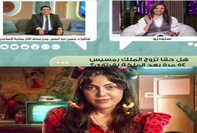 رد الدكتور حسين عبد البصير، مدير متحف الآثار بمكتبة الإسكندرية، على ما ذكرته الفنانة ريهام حجاج في أحد مشاهدها بمسلسل "صدفة" الذي يعرض خلال الموسم الرمضاني الحالي، وتجسد فيه دور مُعلمة تاريخ، إذ قالت لتلاميذها معلومة تاريخية مفاداها أن الملك رمسيس تزوج بعد الملكة نفرتاري 54 مرة، مؤكدًا أن الملك رمسيس الثاني تزوج 6 مرات فقط لأسباب مختلفة، وكانت نفرتاري هي الزوجة المفضلة لديه عن كل زوجاته.