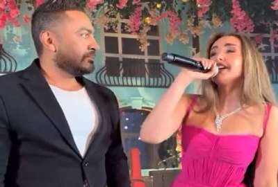 كما سخر الفنان تامر حسني بشكل كوميدي من نبرة صوتها في الغناء، واستكملا معا الرقص والتفاعل مع غنائه أغنيته وأنغام موسيقتها.
