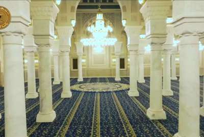 6- تم كساء المحرب الرئيسي بأنفس أنواع الرخام وحفرت عليه آيات قرآنية.