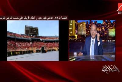 تقدم الإعلامي عمرو أديب بالتهنئة للنادي الأهلي المصري بعد فوزه على نادي الترجي التونسي وتتويجه بطلًا لدوري أبطال إفريقيا.