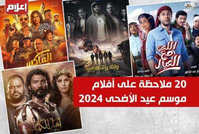 20- يعرض في موسم عيد الأضحى هذا العام 4 أفلام، وهو العدد نفسه الذي عرض في موسم أفلام عيد الأضحى 2023، الذي شهد عرض فيلم "بيت الروبي" والبعبع" ومستر إكس" وتاج".