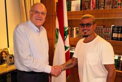 استقبل رئيس الوزراء اللبناني نجيب ميقاتي النجم عمرو دياب اليوم في مكتبة ببيروت وذلك قبل حفله المقام الليلة في العاصمة اللبنانية.