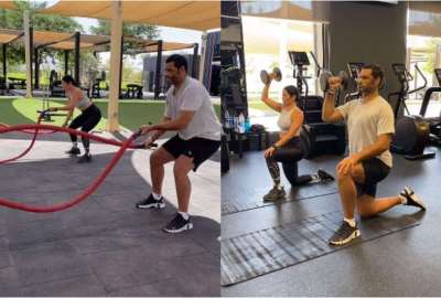 شاركت الفنانة لقاء الخميسي مقطع فيديو يجمعها بزوجها لاعب كرة القدم السابق محمد عبد المنصف وهما يقومان بأداء التمارين في صالة الألعاب الرياضية.