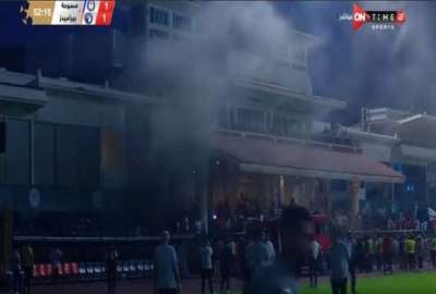 وتوقفت المباراة لحين إطفاء الحريق في الشوط الثاني، والنتيجة التعادل الإيجابي بهدف لكل فريق.