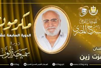 يكرم المهرجان القومي للمسرح المصري، برئاسة الفنان محمد رياض خلال حفل افتتاح دورته السابعة عشرة، الفنان الكبير عزت زين؛ وذلك تقديرًا لمسيرته المسرحية بشكل خاص، والفنية بشكل عام كممثل وكمخرج مسرحي من رواد مسرح الثقافة الجماهيرية .