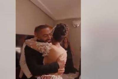 حيث ظهر تامر من خلف مرآة غرفة العروس وهي تضع اللمسات الأخيرة على إطلالتها، وعبرت العروس عن سعادتها وصرخت واحتضنته.