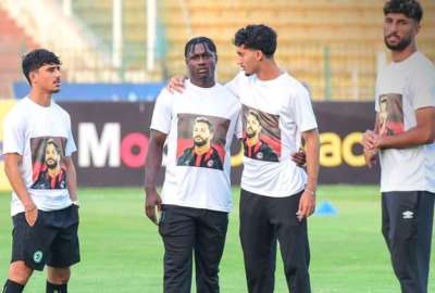 وبالمثل فعل لاعبو المقاولون العرب، كما رفعوا لافتة للراحل.