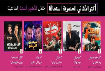 أكثر الأغاني المصرية استماعًا خلال الستة أشهر الماضية: