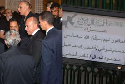 توافد الفنانين والمشاهير على العزاء، وكان الفنان أحمد العوضي أول الحضور، وكذلك الفنانة ياسمين عبد العزيز، كما تواجد الفنان كريم عبد العزيز، وإسعاد يونس وياسمين صبري ومحمد إمام وأحمد عيد وهند صبري ومي عمر ومحمد سامي والمخرج عمرو سلامة، واللاعب محمود عبد المنعم كهربا.