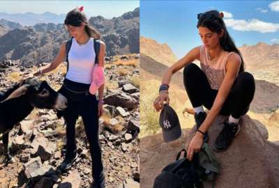 وظهرت في الصور التي نشرتها وهي تتسلق الجبال.