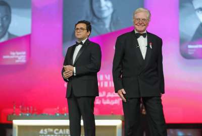 وقال حسين فهمي: "أهلا بكم في حفل الختام على هذه الأرض ما يستحق الحياة فالفن قادر أن يحكي حواديت لأشخاص من لحم ودم يستحقون الحياة وأنا لمحت حب كبير واحتفاء بالمهرجان وكلنا كفريق عمل سعداء بكل كلمة اتقالت علينا وكل اللي اتقال في حق فلسطين ولبنان مش غريب على مصر أم الدنيا فهي حاضنة العروبة فمصر كبيرة بفنها وفنانينها الذين حضروا خلال فعاليات المهرجان بحب حقيقي للسينما".