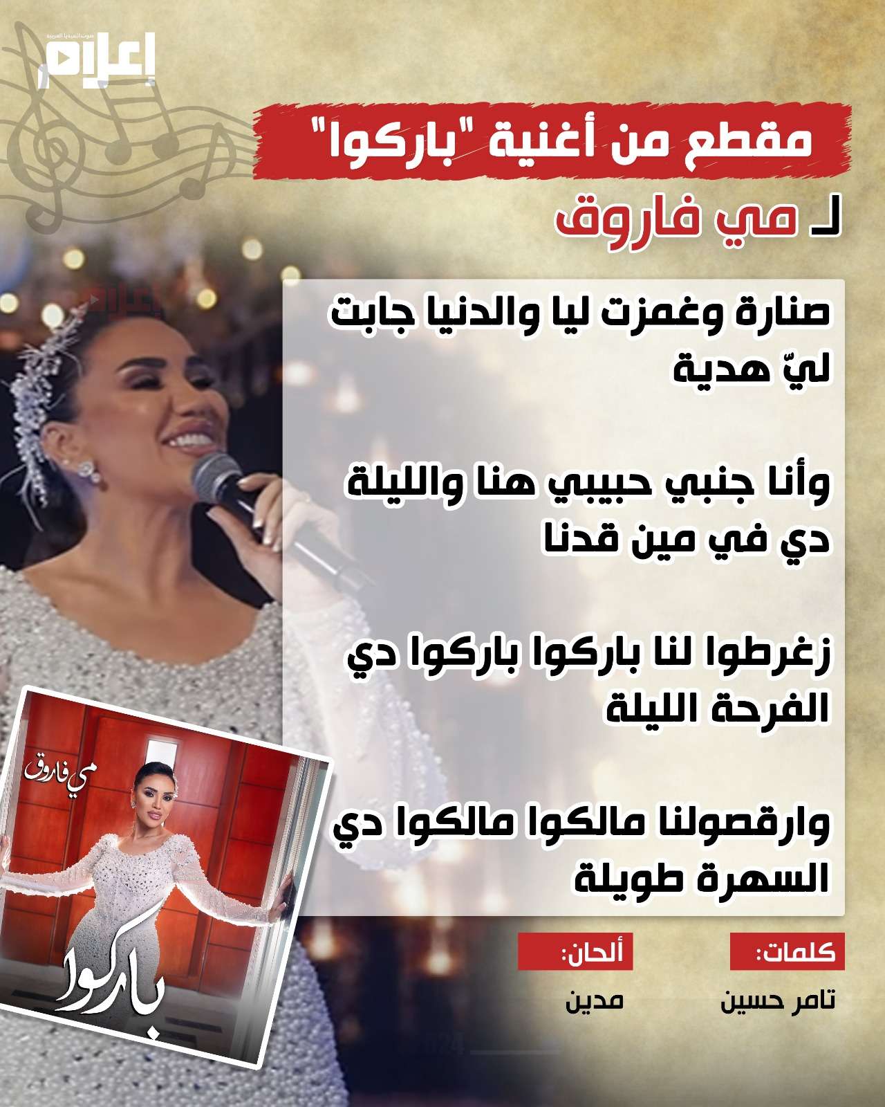 طرحت الفنانة مي فاروق أغنية جديدة تحمل اسم "باركوا" عبر قناتها الرسمية على موقع الفيديوهات "يوتيوب"، بالتزامن مع احتفالها مساء الخميس بحفل زفافها إلى الفنان محمد العمروسي.