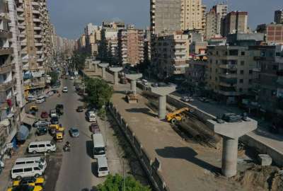 2. جاري تنفيذ أعمال الخوازيق لأساسات وأعمدة المسار العلوي في المسافة بين محطتي طوسون وفيكتوريا وجارى التجهيز لبدء تركيب الكمرات كما يجرى العمل في تنفيذ أساسات المحطات.