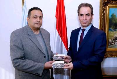 استقبل الكاتب أحمد المسلماني، رئيس الهيئة الوطنية للإعلام، الأستاذ علاء محمد حسني طاهر، حفيد الشيخ مصطفى إسماعيل، وذلك بحضور الأستاذ إسماعيل دويدار، رئيس شبكة القرآن الكريم.