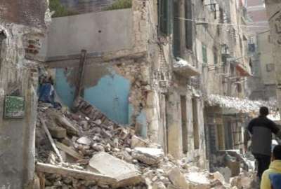 تلقت النيابة العامة إخطارًا من قسم شرطة الجمرك بمحافظة الإسكندرية بانهيار سقف غرفة بالطابق الثالث (الأخير) من العقار الكائن بـ (٤) حارة النخلة بدائرة القسم، مما أدى إلى تساقطه على الطابقين الثاني ثم الأول فانهار العقار من الداخل بالكامل حتى سطح الأرض.