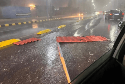 - الحفاظ على مسافة أمان كافية بين المركبات لتفادي الانزلاق.
