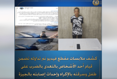 أعلنت وزارة الداخلية كشف ملابسات مقطع فيديو متداول على مواقع التواصل الاجتماعي، أظهر قيام أحد الأشخاص بالتعدي على طفل وسرقته بالإكراه في منطقة الطالبية بمحافظة الجيزة.