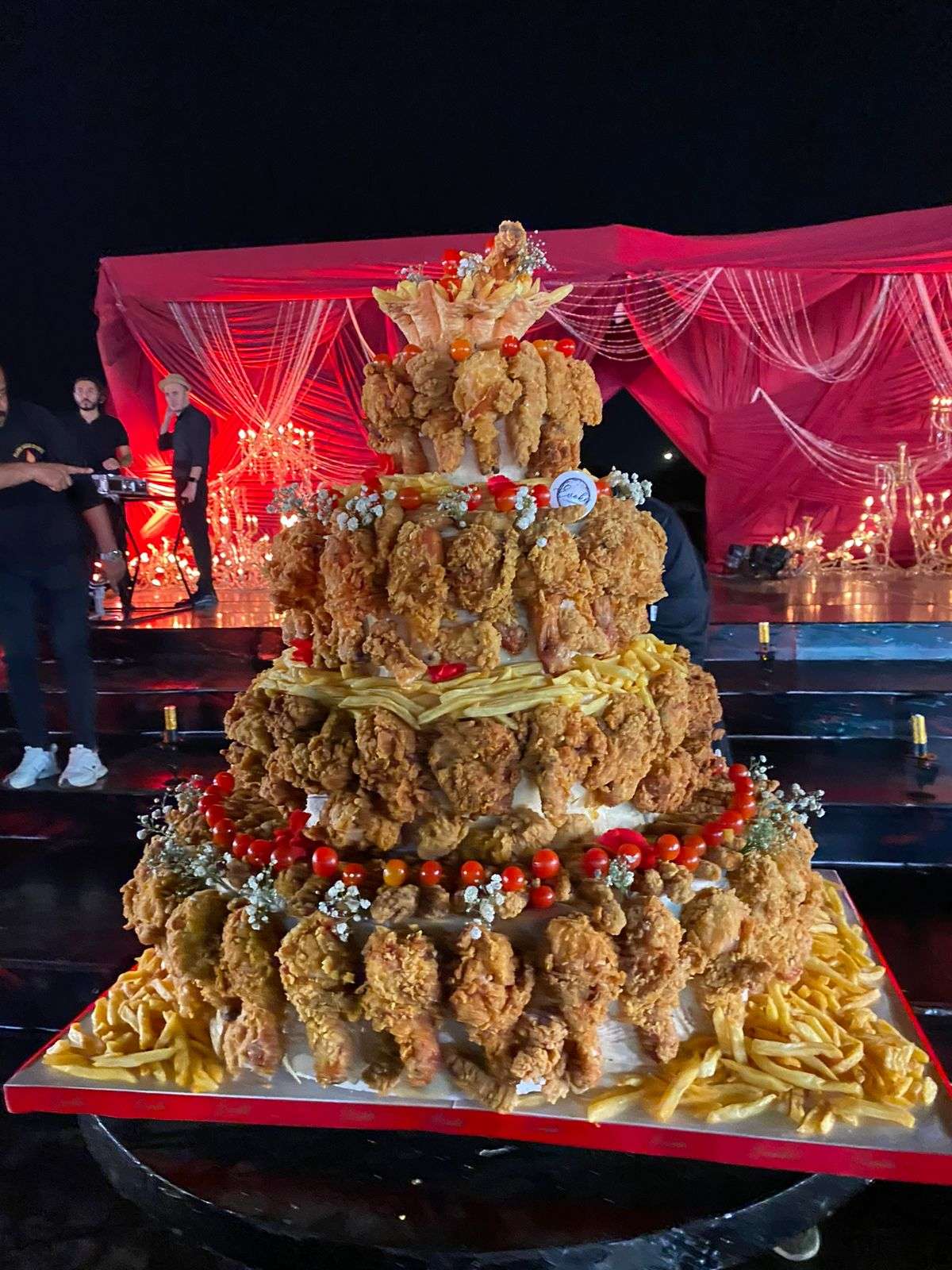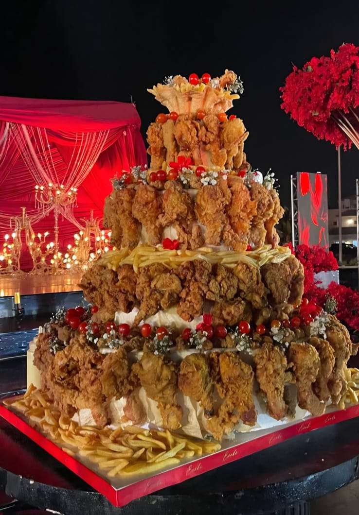 تصدر حفل زفاف دينا هشام، ابنة الدكتورة هبة قطب، حديث مواقع التواصل الاجتماعي بعد انتشار فيديوهات لـ"تورتة الزفاف" غير التقليدية، التي جاءت على هيئة "فرايد تشيكن" بدلاً من الكيك المعتاد.